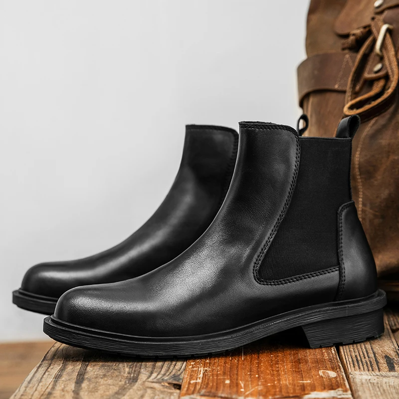 Embrace the perfect blend of sophistication and ruggedness with our High-Quality Cow Leather Chelsea Ankle Boots for Men. These vintage-inspired boots are designed to elevate your autumn and winter wardrobe with a touch of British flair. Crafted from premium genuine cow leather, these boots offer unparalleled durability and style, making them a must-have addition to your footwear collection.