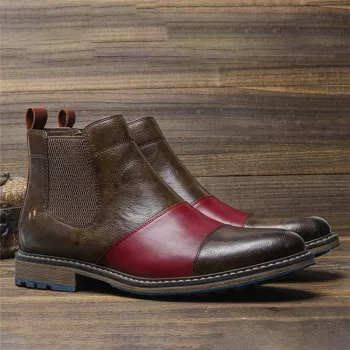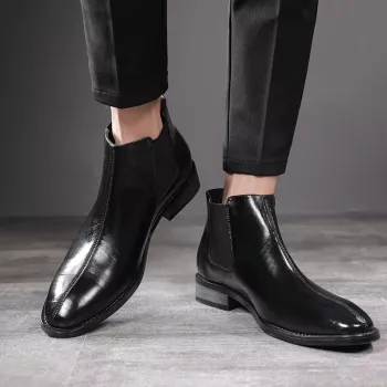 Spring New Pointed Toe Leather Ankle Chelsea Boots for Men