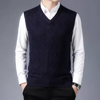 Men’s Autumn Winter Thickened Round Neck Wool Vest
