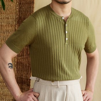 Summer Casual Loose Short-Sleeve Knit Polo Shirt for Men