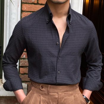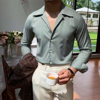 Men’s Slim Fit Long Sleeve Lattice Shirt