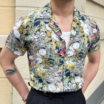 Summer Abstract Art Short Sleeve Floral Shirt for Men