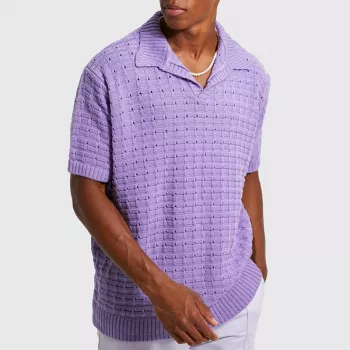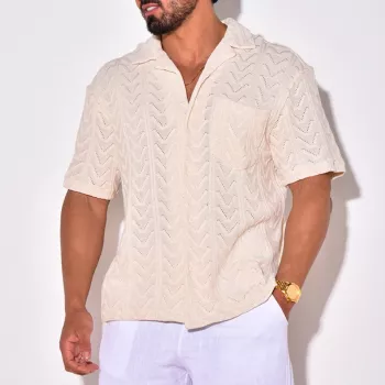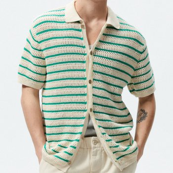 Vintage Men’s Knitted Short Sleeve Button-Up Shirt