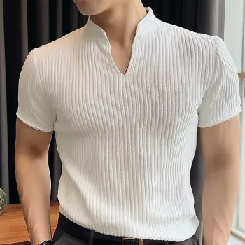 Men’s Luxury Summer Knitted V Neck Polo Shirt