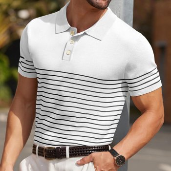 Stylish Slim Lapel Striped Polo Shirt for Men