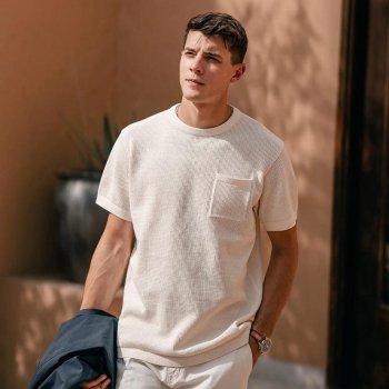 Men’s Summer Breathable Knitted Cotton T-Shirts with Chest Pockets