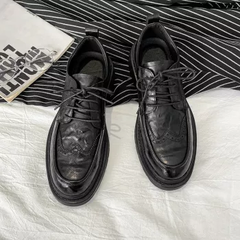 Luxury Black Designer Height Increasing Lace-Up Loafers for Men
