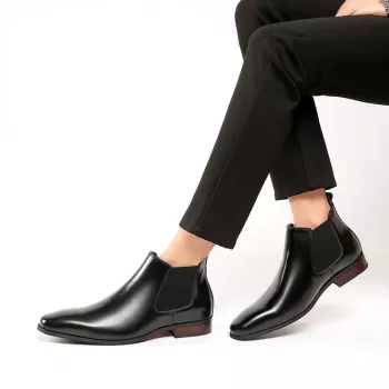 Spring New Pointed Toe Leather Ankle Chelsea Boots for Men