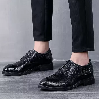 Black Crocodile Leather Business Casual Men’s Oxfords