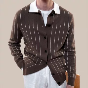 Men’s Autumn and Winter Striped Cardigan Sweater