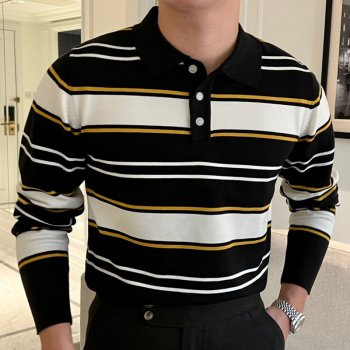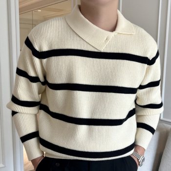 Men’s Autumn-Winter Contrast Striped Lapel Neck Sweater