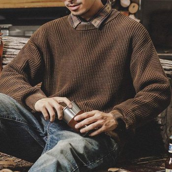 Cozy Japanese Retro Thick Knit Sweater for Men