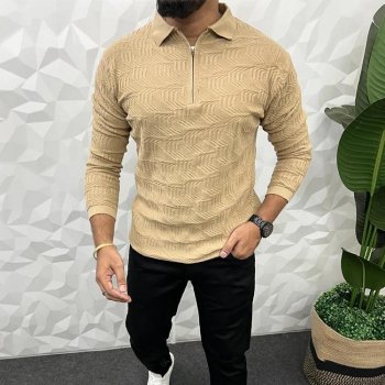 Autumn Men’s Light Luxury Knit Long Sleeve Polo Neck Pullover Sweater