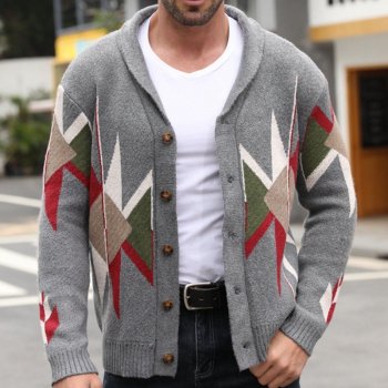 Men’s Luxury Jacquard Knit Cardigan Sweater Coat