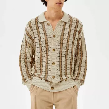 Men’s Contrast Color Striped Jacquard Knit Cardigan