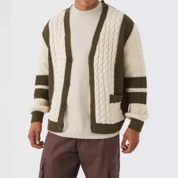 Men’s Stylish Patchwork Knit V-Neck Cardigan