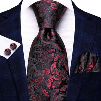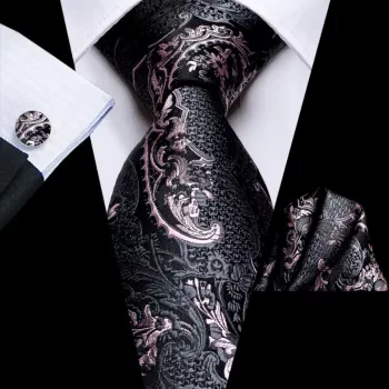 Elegant Black and Pink Floral Silk Necktie Set for Men