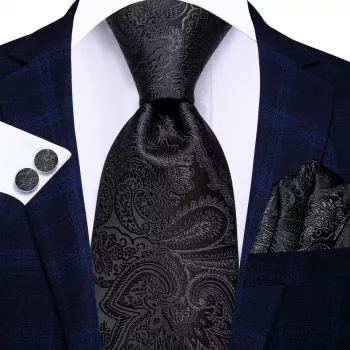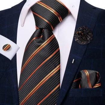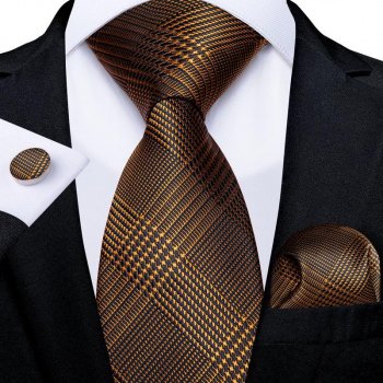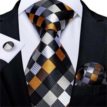 Luxury Houndstooth Black Gold Silk Tie Set for Men