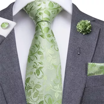 Elegant Green Floral Paisley Silk Necktie and Pocket Square Set