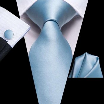 Light Blue Solid Silk Tie Set with Handkerchief and Cufflinks