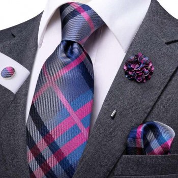 Elegant Grey Plaid Silk Men’s Necktie Set