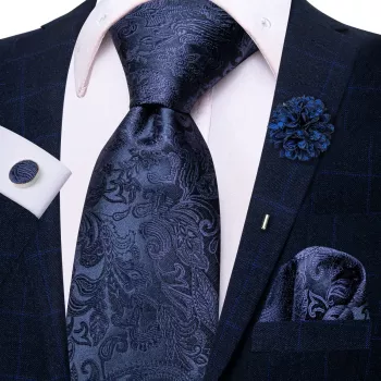 Blue Burgundy Paisley Silk Men’s Tie Set