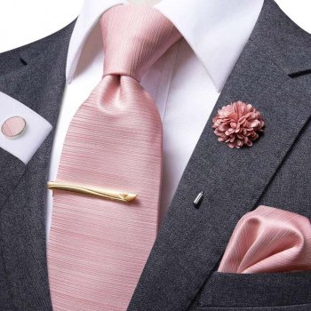 Rose Gold Pink Silk Wedding Tie Set with Handkerchief and Cufflinks