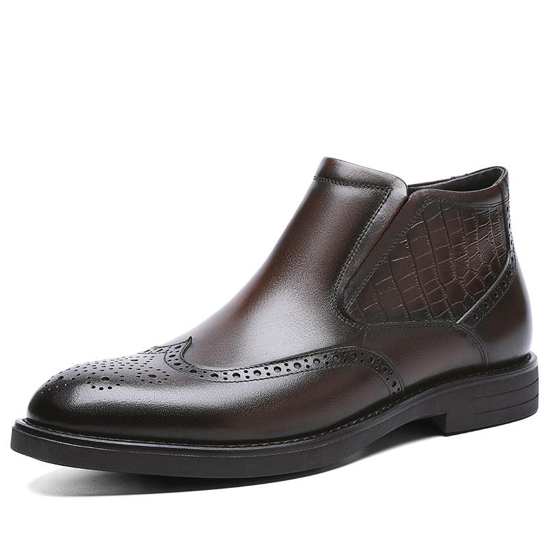 Each pair of these exquisite ankle boots is meticulously handmade, reflecting a dedication to detail and excellence. The upper, lining, and shaft are all constructed from genuine cow leather, providing a rich, supple texture that only improves with age. The pointed toe design adds a touch of sophistication, while the solid pattern offers a versatile look that pairs effortlessly with both casual and formal attire.